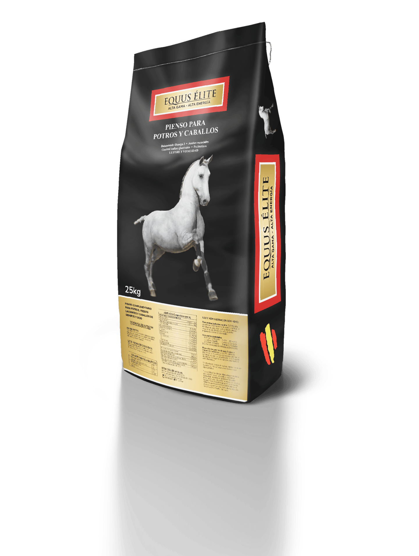 Equus Élite nace con una idea simple y contundente: ni un nutriente de menos, ni un coste de más. Es un pienso de alta gama diseñado desde la fisiología real del caballo, no desde el marketing. Su formulación nutraceútica y funcional mejora la absorción, optimiza las rutas metabólicas y apoya al sistema inmune, logrando un lustre y una vitalidad visibles antes del primer mes de uso.